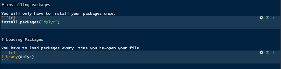 Don’t forget to run the code! If you don’t want to use CTRL+Enter everytime, Rmarkdown has a way to “run the chunk”: