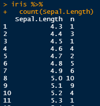 Count() – How many plants had sepal length of the specified measurement. So for example 10 plants had a Sepal Length of 5.0!
