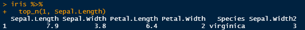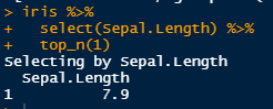What if I want the top values only for Sepal Length and not the other information that came along with it? Well I’d select() just the Sepal Length column:
