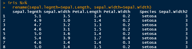 mutate() = let’s transform our data with more calculations and create a new column with these calculations. You can mutate by numbers or by columns.